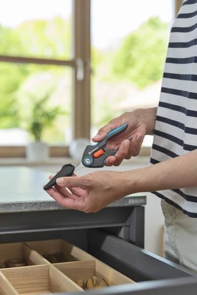 De FreshCut Kruiden Oogstschaar van GARDENA is bijzonder geschikt voor het oogsten van verse kruiden, bessen of snijbloemen. De nauwe, puntige, precieze messen zijn gemaakt van duurzaam, roestvrij staal en zullen je verbluffen bij iedere knip. Met de FreshCut kan je erg netjes en nauwkeurig knippen, tot aan het puntje. De oogstschaar werkt ook erg goed in nauwe plekjes, zodat basilicum oogsten en bloemen koppen erg makkelijk gaat. De schaar ligt comfortabel en veilig in de hand, dankzij de slipvaste ErgoTec-handgrepen met zachte grip. Om de schaar veilig op te bergen en vervoeren plaats je de veiligheidskap over de gesloten messen. Het vergrendelingsmechanisme laat je de schaar met één hand eenvoudig, stevig vergrendelen en weer ontgrendelen. Wat je ook knipt: de voedselveilige messen laten geen smaak of geur achter. De schaar is vaatwasmachinebestendig, wat hem erg gemakkelijk te reinigen maakt